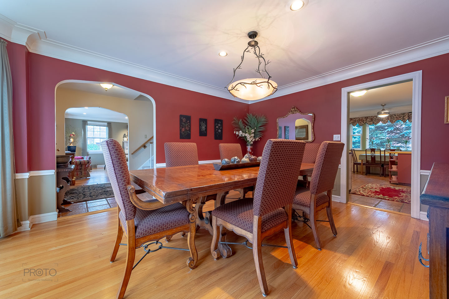 This property is an iconic brick Georgian Colonial that has been impeccably cared for since its construction in 1951. Situated on an expansive corner lot, the home offers a blend of classic elegance and functional modern updates. The layout is designed for both comfortable daily living and grand entertaining, featuring a seamless flow between the primary living spaces.