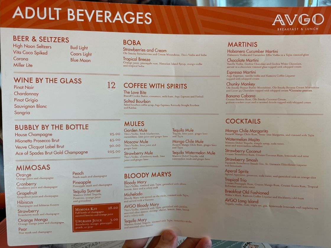The following images are the food and drink menus at Avgo.  There is also a monthly specials menu – I didn’t include thiat in this post since it will be dated by the time you’d read this blog.