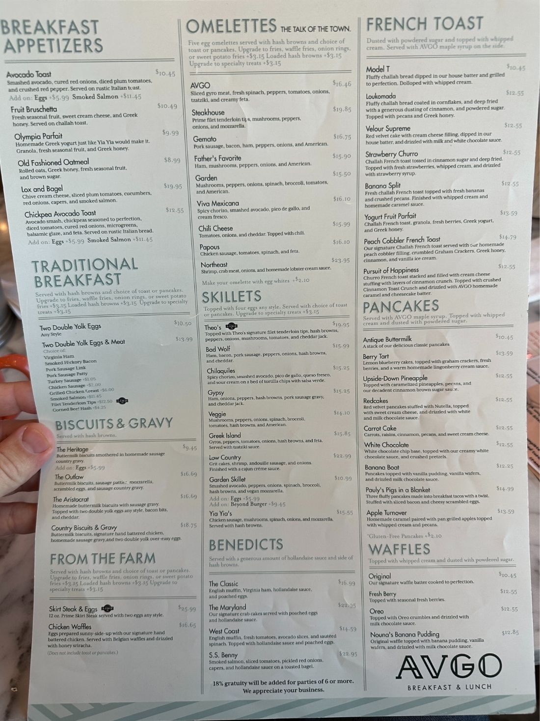 On November 15, 2025 a frined and I visited Avgo Restaurant in St. John IN for breakfast.  Avgo is a family favorite restaurant for breakfast.  Avgo is open for breakfast and lunch, however we have only been there for breakfast.